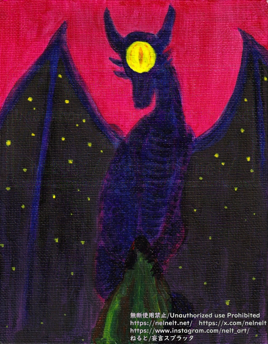 夜の訪れ イラスト 2026.03.17(火) グループ展「夜空パレット」のDMイラスト用に描いたものです。F0サイズのキャンバス。展示の期間は今年の12月11日(金)~12月13日(日)、場所はデザインフェスタギャラリー原宿(WEST1-D)です。よろしくお願いします!